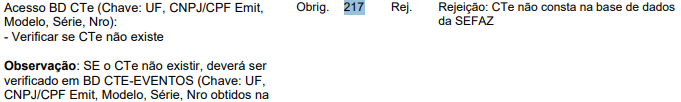 A Rejeição 217 (CT-e não consta na base de dados da