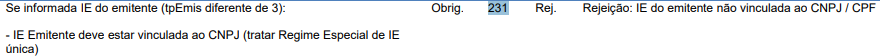 Confira abaixo a regra de validação aplicada pela SEFAZ: