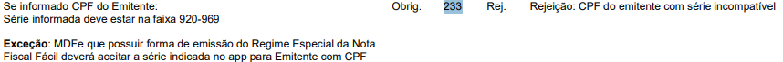 Confira abaixo a regra de validação aplicada pela SEFAZ:
