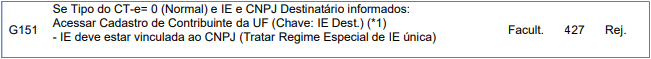 SEFAZ retornará a rejeição 427 – IE do destinatário não vinculada ao CNPJ.