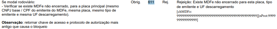 descarregamento, a SEFAZ retornará a Rejeição 611.