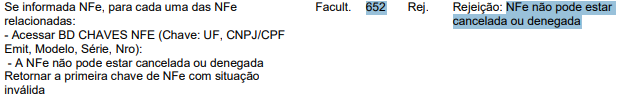 essa verificação, o sistema identifica se a NF-e está cancelada ou denegada.