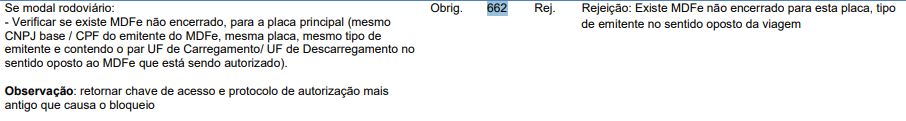 “Existe MDF-e não encerrado para esta placa, tipo de
