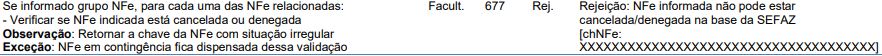 Confira abaixo a regra de validação aplicada pela SEFAZ: