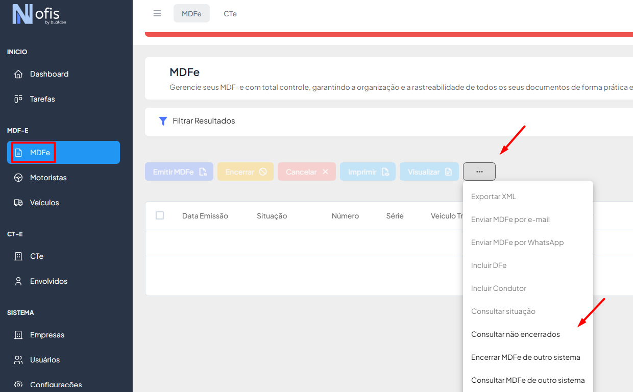 No sistema Nofis, é possível encerrar MDF-e que tenham