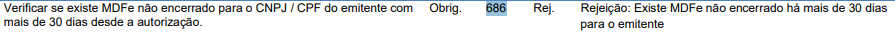 “686 – Existe MDF-e não encerrado há mais de 30 dias para