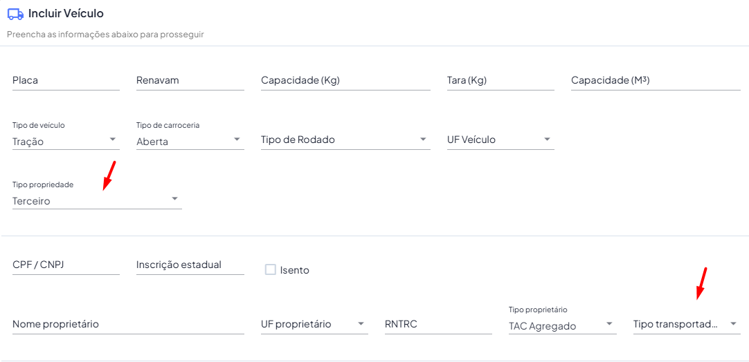 transportador relacionado ao CNPJ do proprietário do veículo de tração.